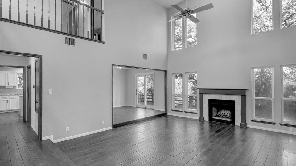 Spectacular Greenbelt Views! Nestled on a dreamy cul-de-sac in NW Austin's coveted Park at Spicewood Springs (The Mountain Neighborhood), this timeless classic offers serene views of the upper Bull Creek Greenbelt from the entertainer’s deck and the entire back of the home. Nearby highly acclaimed RR ISD schools—Laurel Mountain Elem, Canyon Vista MS, and Westwood HS. Situated on a gorgeous half-acre lot, this 1986-built gem has been lovingly maintained and updated by the original owners with $150K+ in modern upgrades over the last decade, including the roof & gutters (2024), Marvin Infinity windows, AC units, siding, doors, interior/exterior paint, light fixtures, back deck, appliances, countertops, and more. Features include soaring two-story ceilings over the living room, a wood-burning fireplace, and stacked windows, and wood-look tile plank flooring. The renovated kitchen boasts a center island with an electric cooktop and seating, sleek granite countertops, grey subway tile backsplash, stainless steel appliances, and abundant cabinetry. A sunny dining area offers picturesque views of NW Austin’s rolling hills. The home office offers great flexibility and includes a dry bar with glass sliders that open to the back deck. The main-floor primary suite features vaulted ceilings, a walk-in closet, deck access, and a spa-like ensuite bath. Upstairs, two large bedrooms share a stylish Jack-and-Jill bath. A refinished entertainer’s deck stretches across the entire backside of the home, perfect for outdoor living and dining under the shade of mature trees. Stairs lead down to a level yard and a gently sloping wooded area, offering adventure down to the Bull Creek greenbelt hiking trails. Just a few blocks away, enjoy Mountain View Park with a playground, picnic pavilion, tennis & sports courts, and trails. No HOA. Google Fiber available. Convenient access to 183, The Domain, North Austin tech corridor, FC stadium, and just 30 minutes to Downtown.